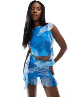 Missyempire Mesh Racerneck Sleeveless Crop Top And Drape Knot Detail Mini Skirt Co-ord In Black
