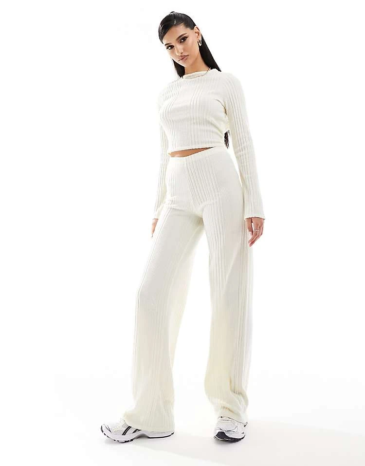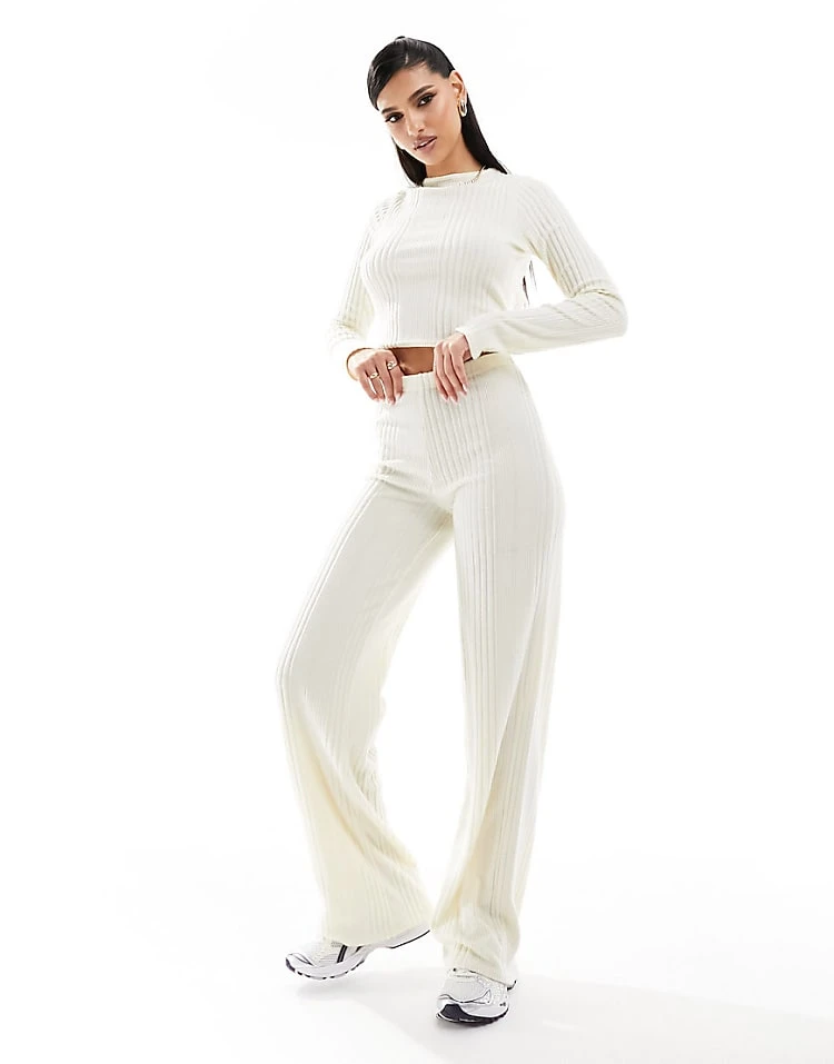 Missyempire Ribbed Open Tie Back Top And Trousers Co-ord In Cream