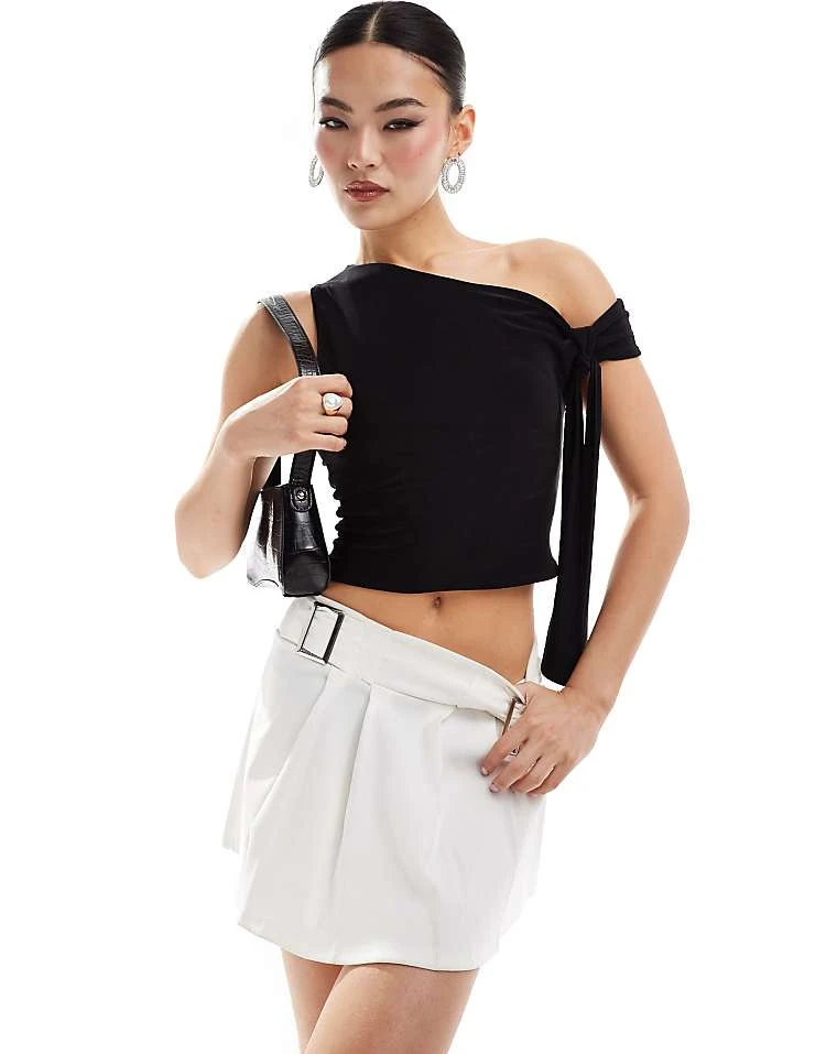 Missyempire Mesh Racerneck Sleeveless Crop Top And Drape Knot Detail Mini Skirt Co-ord In Black